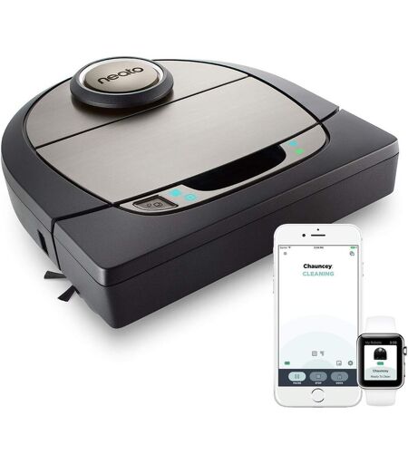 Use the Neato app to start, stop, find, schedule and receive notifications from your intelligent robot vacuum even when you're not home - Total control is at your fingertips Protect valuable decor, pet bowls or heavy messes by creating ""no-go"" lines through the app which work as virtual boundaries so that the automatic vacuum knows what objects or areas to avoid Pet hair, dust and allergens that linger in the home are first to go - The exclusive D-Shape design mimics corners of your home for a prec clean that round-shaped robotic vacuums simply can't do Choose your clean - The Eco option gives a longer, quieter energy-saving clean while Turbo option provides a super-powered cleaning, with imum hair pickup for a deeper clean Even with 120 minutes of run time per charge, the smart vacuum cleaner always goes back to its base to recharge if needed and picks up directly where it left off until the job is done Le service client Neato Robotics est disponible du lundi au vendredi de 9h à 17h au numéro suivant +33 9 75 18 02 96 ...