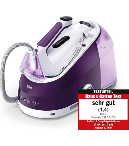 Braun Carestyle 5 Is5247Vi Fer À Repasser Vapeur Avec Technologie Freeglide 3D,Vapeur 145 G/Min,Chauffage Rapide,Mode Icare,Repassage Vertical,Réservoir Amovible De 2 Litres,2400 W,Violet