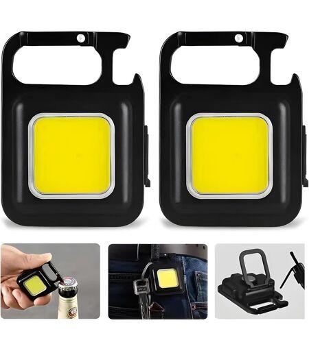 2 X Mini Rechargeable Flashlight, Rechargeable Mini Work Light, Portable Mini Work Light 800 Lumen Cob Key Ring, For Camping, Repair, With Bottle Opener, Magnetic Base