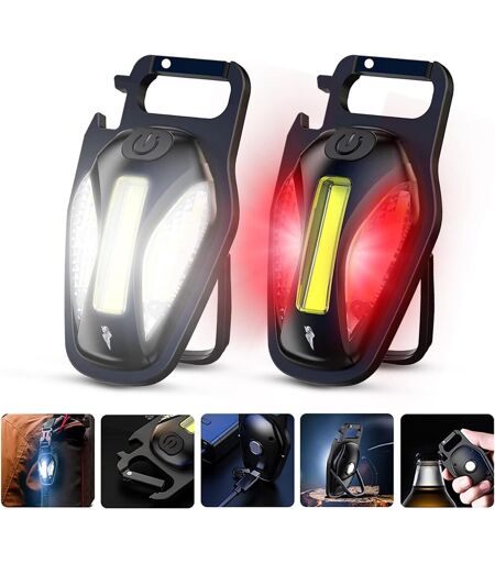 COB light with high brightness? The flashlight keychain uses powerful LEDs to provide illumination up to 500 lumens while maintaining a portable size and simple design. Can be used with other common portable power devices such as computers, laptops, car chargers, wall chargers and power banks Portable design? : Mini size: 89 x 50mm/3.5"" x 2"", portable size, can be taken away, hook lock design, can also be hung on backpack. The stable magnetic base and rotating handle allow you to relax your hands while you work. The magnets allow the lamp to be fixed on any metal, and the 90° folding handle allows the lamp to be placed at different angles or hang it anywhere. 5 Lighting Modes? Our keychain flashlight has 5 lighting modes - strong COB light, 8 strong LED light, COB + 8 strong LED light, COB + 8 strong COB LED + 8 LED strong light COB + 8 LED low flashing LED. Rechargeable? : When you need to charge, just connect the USB power supply. This USB rechargeable flashlight is powered by a built-in high-capacity battery and includes a micro USB charging cable. Wide usage? A: The mini flashlight can be used as a small work light and emergency light. It can be used in a variety of scenarios such as work, camping, repair, gas, BBQ, research or just for fun and is best suited for evening activities. ...