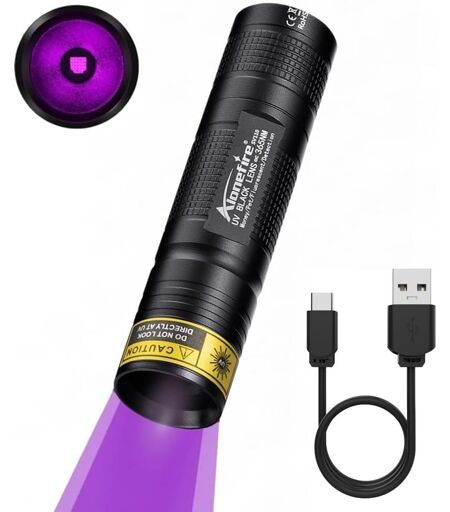 [Quality 365nm UV LED]This UV flashlight uses high quality 365nm UV LED as the light source, with an impressive 3W power consumption and 600mW light output, making it a professional black lamp for some professional uses. [Black UV Filter Lens] This Woods lamp is equipped with a hardened black filter optical lens that can filter out stray light from the environment, making ultraviolet light purer and more powerful. [Quality Aluminum Alloy Housing]The housing of the black light flashlight is made of high-quality aluminum alloy, which greatly improves its heat dissipation performance, extends the life of the lamp, and makes the black light more reliable and durable. [USB C Rechargeable]This 365nm UV lamp is designed with USB C charging port. It can be inserted into the charging port without worrying about the orientation of the plug, making charging more convenient and easier. The charging indicator allows you to track the charging status of the device and makes the charging process safer. Built-in high capacity rechargeable battery [Wide Range of Uses]The black light lamp for pet urine detection is powerful and durable, suitable for detecting fluorescent substances invisible to the naked eye, including checking cat/pet urine, fungus detection in cats, currency authentication, scorpion detection, mineral detection, bed bug detection and identity verification. ...