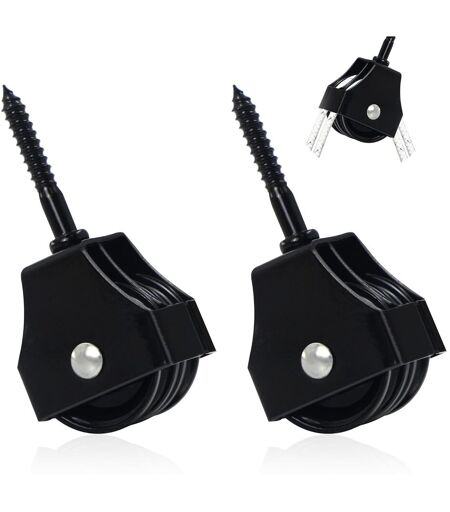 Double Pulley Cable With Screws - Heavy Rotary Rigging Cable Single Kit Fitness, Pulleys For Fitness Equipment, Diy, Gym, Metallic Rotary Pulley (Black, 2pcs)