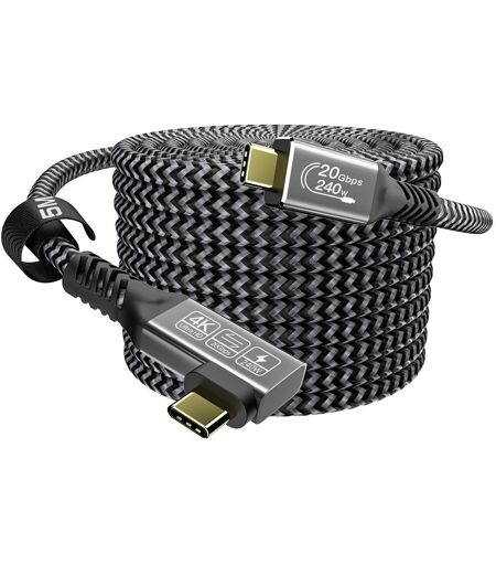USB C Cable 5 m, USB 3.2 20Gbps 240W USB C Cable Fast Charging, Video Transmission 4K@144Hz USB C to USB C Cable Angled USB C Cable for Smartphone, Mobiles, Monitors, Laptop, VR, USB C Cable 5