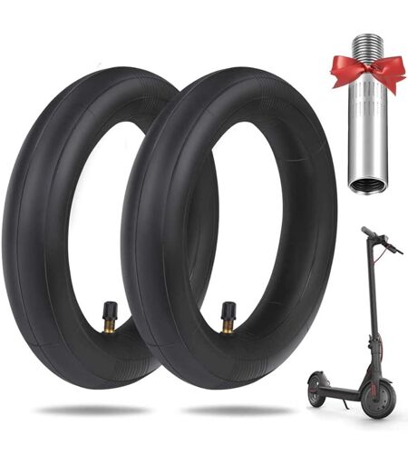 [Thicker Inner Tubes] The Xiaomi M365 inner tube has a thickness of 1.8 mm, is double compared to the inner tube of Xiaomi electric scooter. It is made of high quality butyl rubber, wear-resistant, high temperature resistant, durable. This allows you to significantly improve the resistance of your scooter tubes against punctures. [Heavy Duty Valve]We have thickened the connection between the valve and the electric scooter inner tube, and the M356 inner tube is no longer fragile. The copper nozzle is made of alloy, so you don't have to worry about valve breakage. [Perfect for Xiaomi M365] The replaceable xiaomi m365 inner tubes have a size of 8.5 inches and completely replace the tire of Xiaomi M365/1S/Scooter 3/Essential/Pro/Pro2, more durable than the . Our inner tube tyres can perfectly replace worn or broken scooter tyres. [Easy to Use]In order to facilitate the inflation of the inner tube for scooters, we have prepared a valve extension for you. The high quality valve extension makes it very convenient to inflate the 8 1/2x2 inner tubes. The scooter inner tube can be inflated at any inflating station. [Good cushioning effect] The Xiaomi M365 inner tube is durable and resistant, compared to solid tyres. The reinforced inner tubes offer you excellent vibration dampening result, and easier installation. Better driving comfort on various roads. ...