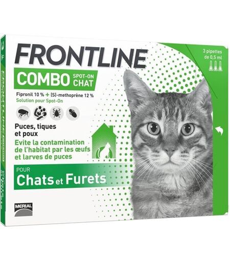 3 pipettes FRONTLINE Combo chat pour traiter votre chat contre puces et tiques. [ Efficacité prouvée ] 1 pipette = 4 semaines de protection contre les puces et 2 semaines contre les tiques. Prévient l'infestation de l'habitat et la réinfestation de l ...