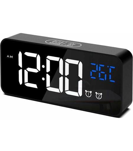 SNQ - Réveil Numérique, Horloge Numérique led Horloge Digitale Réveil Aver Température/Snooze/ 2 Alarme/12/24 Heures/Port de Recharge USB/16 musiques