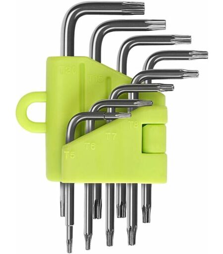 SNQ Clés Torx Coudée, Kit de 8 Pièces Clés Allen Torx, Tournevis Etoile T5 T6 T7 T8 T9 T10 T15 T20, Ensembles de Clés Outillage à Main Clés Hexagonales
