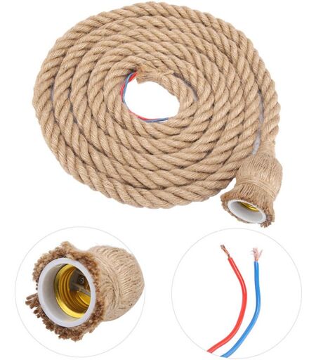SNQ - 2m vintage corde de chanvre lampe suspension Lumière Lustre Industriel Vintage Retro Style porte ampoule de plafond pour restaurant bar