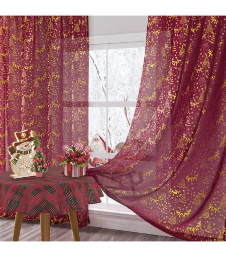 SNQ 2 Pièces Rideaux Noël - Rideau Voilage Semi (4264cm) -Transparents, Motifs de Noël, Rideu Galon Fronceur, Décoration Moderne pour Fenêtre de Salon