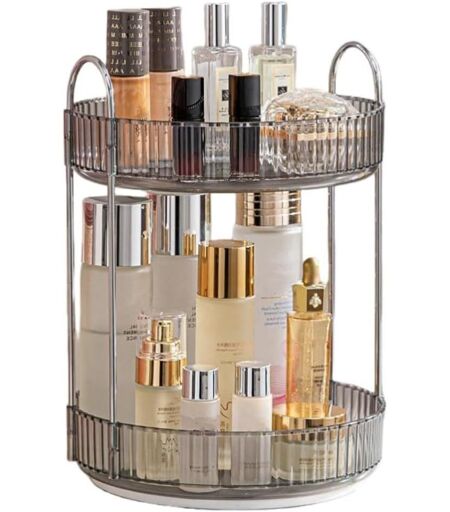 Tianyi-Organisateur Maquillage Rotatif, Rangement Maquillage Rotatif 360°, Organisateur De Cosmétiques, Présentoir Cosmétique, Organisateur De Parfum Pour Commode De Salle De Bain (2 Couches, Gris)