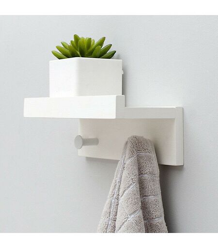 Mrosaa Cloison En Ligne Fixation Murale En Bois Massif Crochet Rack Étagère Murale Support De Stockage, Blanc, 2 Crochets