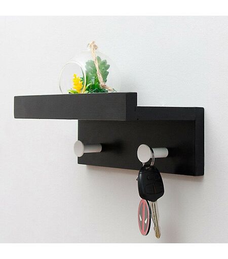 Mrosaa Cloison En Ligne Fixation Murale En Bois Massif Crochet Rack Étagère Murale Support De Stockage, Noir, 2 Crochets