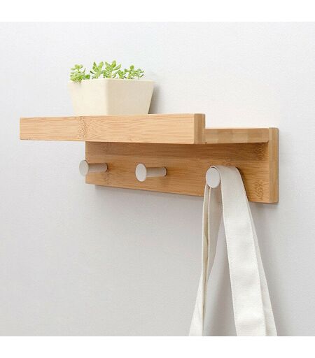 Mrosaa Cloison En Ligne Fixation Murale En Bois Massif Crochet Rack Étagère Murale Support De Stockage, Bois, 4 Crochets