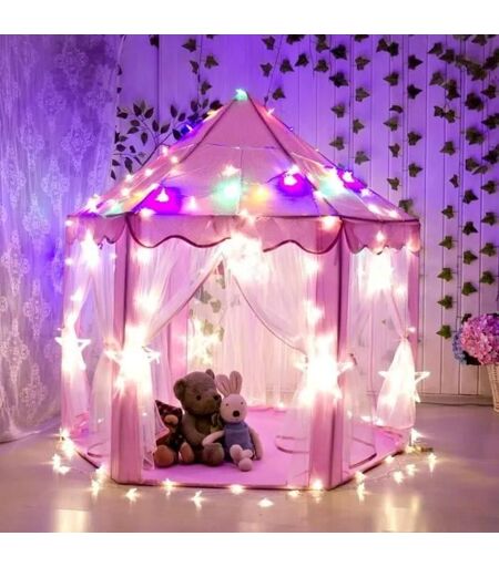 Tente de jeu princesse TEMPSA pour enfant avec lumière LED - Rose - 140x140x135cm ...