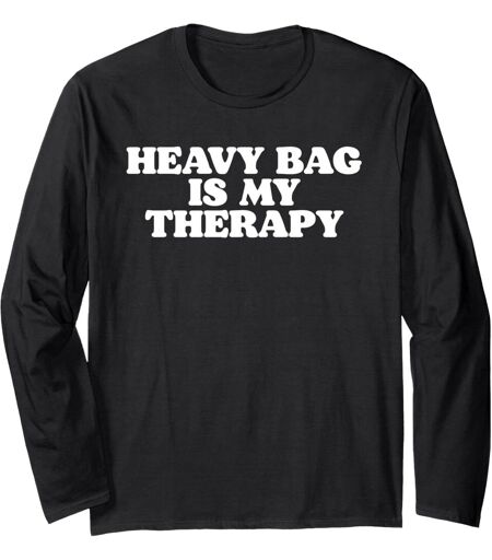Heavy Bag Is My Therapy Funny Minimalist Boxing Fitness Manche Longue