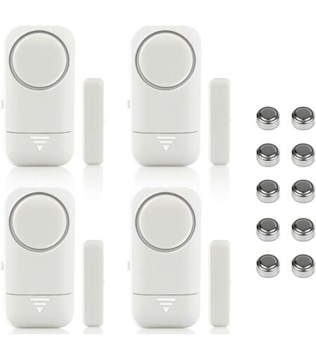 LONGZIMING Lot de 4 alarmes magnétiques pour fenêtre et porte - Alarme maison- Système anti-vol sans fil - Piles incluses- Anti-Intrusion Anti-Vol Contre