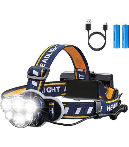 ZQYRLAR Lampe Frontale Super Lumineuse, Lampe Torche led Rechargeable Lampe Frontale led avec 6 LEDs 12000LM 8 Modes d'Eclairage avec Câble usb