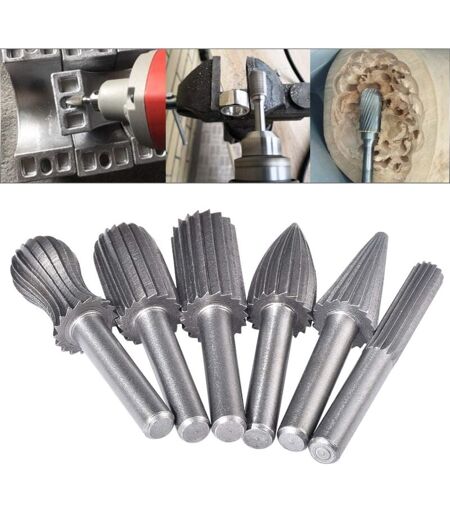 Zqyrlar - Lot de 6 fraises rotatives en tungstène double coupe 6 mm Queue en tungstène Embouts de limage/gravure/meulage pour outils rotatifs