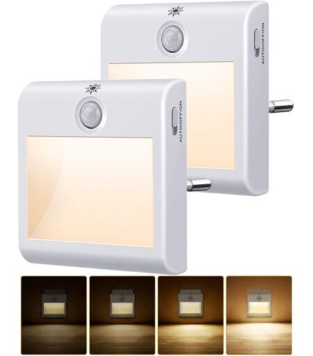 Veilleuse Prise Electrique, [Lot de 2] Veilleuse avec Détecteur de Mouvement (ON/AUTO/OFF), Veilleuse LED Dimmable 3500K Blanc Chaud, Veilleuse Enfant pour Chambre, Couloir, Escalier, Cuisine, Salon Caractéristiques: [3 Modes d'éclairage : ON/AUTO/OFF] ☀ ON : toujours allumé. AUTO : avec un détecteur crépusculaire et un détecteur de mouvement infrarouge, cette petite veilleuse enfant s'allume automatiquement pendant 30 secondes lorsque la lumière est faible et que des personnes ou des animaux domestiques passent. La portée de détection est de 4 mètres et 120°. OFF : désactiver [Luminosité à gradation en continu] Vous pouvez régler en continu la luminosité de la veilleuse LED entre 15 et 100 %. Appuyez longuement sur le bouton "" pour le rendre plus lumineux, et appuyez longuement sur "" à nouveau pour le rendre plus sombre. Il est plus facile de répondre à vos besoins que la gradation par niveau. [Sûr et économe en énergie] La veilleuse bébé est fabriquée dans un matériau PC ignifuge, ...