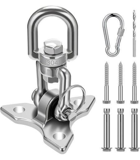 DKSFJKL Crochet De Plafond avec SUS304 Acier Inoxydable 450KG Capacité 360 ° Rotation, Plafond Ensembles Bois béton pour Hamac Crochets à Suspendre Kit avec