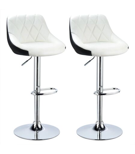 YONGQING Lot de 2,Tabouret de Bar,en Cuir PU,Reglable en Hauteur et Pivotant,Pied Chromé,blanc + noir