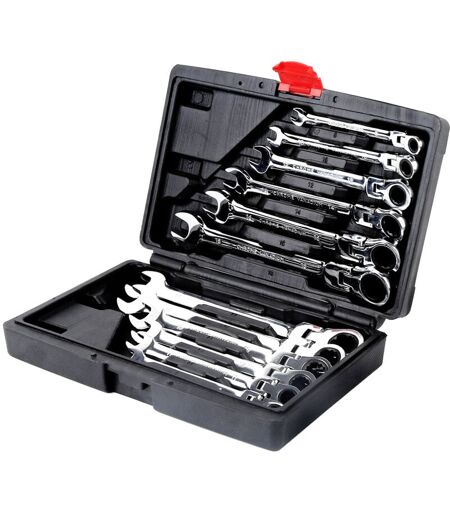 JEOBEST Malette jeu de 12 clés mixtes à cliquet outils garage atelier acier à outils lot jeu clé polygonales et plates Trousse de Rangement noir