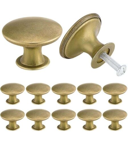 ALOVEZ Lot de 12 boutons d'armoire vintage chic en laiton antique pour placard de cuisine - 30 mm - Laiton