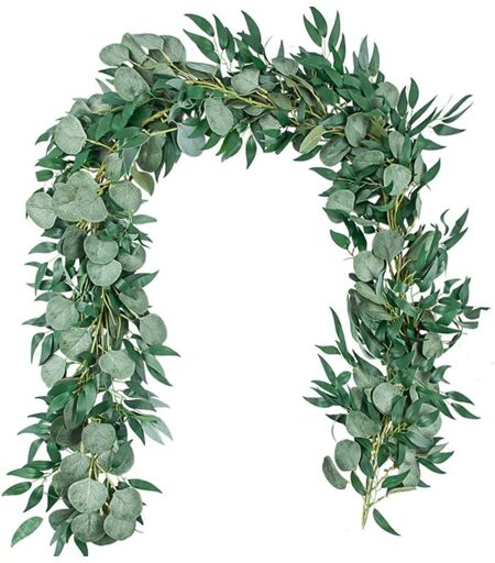KZQ Lot de 2 guirlandes d'eucalyptus artificiels avec feuilles de saule, 6,5 pieds de fausses vignes vertes pour chemin de table de mariage, décoration