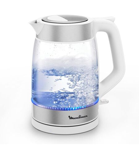 Moulinex Bouilloire Électrique En Verre 1,7 L, Ébullition Rapide, Transparente, Filtre Amovible, Éclairage Led, Base 360°, Sans Fil, Blanc, By6R5130