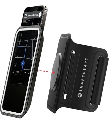Le 1er brassard téléphone sport magnétique au monde le brassard Shapeheart est le seul vous permettant daccéder à votre smartphone pendant votre activité. Grâce à la pochette magnétique détachable brevetée, vos applications musique, performances sportives, GPS et autres sont à portée de main, sans avoir à vous contorsionner ou à enlever votre brassard. Comment ça marche Glissez simplement votre téléphone portable dans la pochette, lancez votre musique ou votre application de running, puis clappez la pochette magnétique sur le brassard. Quelle que soit votre activité, notre système breveté résiste jusqu'à 8kg et maintiendra votre smartphone en place, accessible en un seul geste. Ergonomie, confort et robustesse Fabriqué en lycra et en néoprène, le brassard Shapeheart évacue la transpiration et offre un confort optimal. Son bandeau large ne glisse pas et permet un maintien optimal du bras. Il s'adapte à tous les bras (de 20 à 40 cm), même les plus fins ! Universel et weatherproof La pochette Shapeheart est tactile et protège votre téléphone de la pluie. Disponible en 3 tailles, elle est compatible avec tous les smartphones du marché et dispose d'une sortie centrale pour les écouteurs/chargeur. Conception França et SAV 7/7 Shapeheart est une jeune startup França . Nous offrons des produits qualitatifs, répondants à vos besoins. Notre SAV est disponible 7j/7. ...