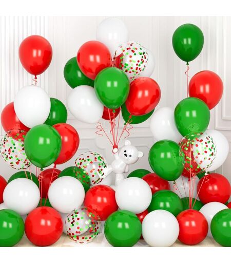Christmas Balloons, 30 Pieces 12 Inches White Red Green Confetti Latex Balloon With Ribbon For Children Girls Boys Birthday Party Baby Shower Wedding Christening Festival Decoration