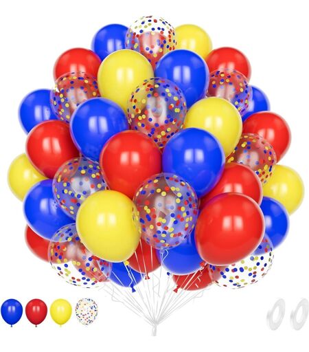 Red Blue Yellow Balloon, 60 Piece 12 Inch Confetti Latex Helium Balloon For Carnival Children'S Birthday Baby Shower Graduation Other Party Decoration