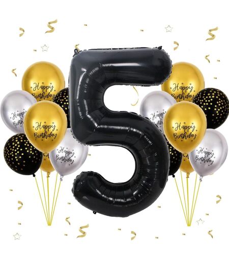 5 Year Birthday Balloon, Black, 13 Pieces Birthday Balloon Set With Large Foil Balloon Number 5, 101 Cm Baudruche Balloons, Balloon 5 Year Decoration Birthday Flying Thanks To Helium