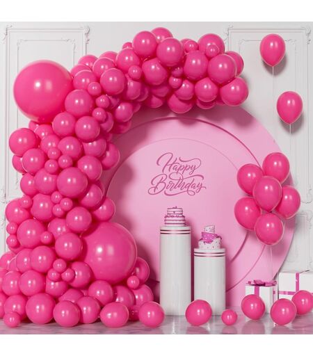 Valuable Pack You will receive 2 x 18 inch matte hot pink balloons, 15 x 12 inch matte hot pink balloons, 89 x 10 inch matte hot pink balloons, 20 x 5 inch matte hot pink balloons, 2 x 10 m balloon ribbon, 1 balloon chain and 1 balloon glue dot. Durable material all the materials of balloons are for decorating your party. These are thicker than others, not easy to break, very durable. They can be filled with air or helium and are recommended for use with balloon pumps Widely Used for All Scenes The balloon arch kit is perfect for any event. Make a massive statement with this elegant balloon arch kit for baby showers, bridal showers, birthday parties, weddings, desserts, picnics, holidays, outdoor decorations and more! Decorate any indoor or outdoor party as photo booth backdrop and create lasting memories, come and host an unforgettable party Happy DIY Time - This decorative set includes latex balloons, balloons of various sizes that fill with air and helium and last for hours. We offer ribbon as a gift, easy to tie, and using it will save your time and effort, which can help you make party decorations easier STYLISH PARTY SUPPLIES - Don't worry about buying this balloon decoration supplies kit. Our company focuses on balloons and party decoration Warning Children can choke or suffocate on uninflated or broken balloons. Keep uninflated balloons away from children. Discard broken balloons at once. Warning Not suitable for children under 36 months ...
