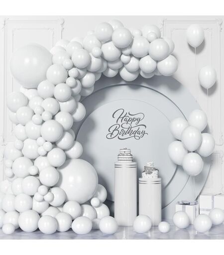 Valuable pack you will receive 2 pieces 18 inch matte white balloons, 15 pieces 12 inch matte white balloons, 89 pieces 10 inch matte white balloons, 20 pieces 5 inch matte white balloons, 2 pieces 10 m balloon ribbons, 1 balloon chain and 1 balloon glue dot Durable material all the materials of balloons are for decorating your party. These are thicker than others, not easy to break, very durable. They can be filled with air or helium and are recommended for use with balloon pumps Widely Used for All Scenes The balloon arch kit is perfect for any event. Make a massive statement with this elegant balloon arch kit for baby showers, bridal showers, birthday parties, weddings, desserts, picnics, holidays, outdoor decorations and more! Decorate any indoor or outdoor party as photo booth backdrop and create lasting memories, come and host an unforgettable party Happy DIY Time - This decorative set includes latex balloons, balloons of various sizes that fill with air and helium and last for hours. We offer ribbon as a gift, easy to tie, and using it will save your time and effort, which can help you make party decorations easier STYLISH PARTY SUPPLIES - Don't worry about buying this balloon decoration supplies kit. Our company focuses on balloons and party decoration Warning Children can choke or suffocate on uninflated or broken balloons. Keep uninflated balloons away from children. Discard broken balloons at once. Warning Not suitable for children under 36 months ...