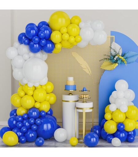 Balloon Arch Kit, Blue, Yellow, White, 125 Pieces Set Garland Balloons Blue Yellow White Latex Party Balloons For Baby Shower Engagement Birthday Wedding Party Picnic Decoration