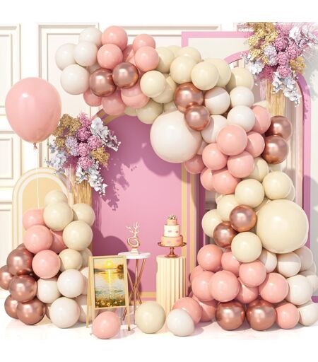 Balloon Arch Kit The balloon arch kit includes 46 retro pink balloons (18"" x 1, 12"" x 15, 9"" x 30), 46 apricot balloons (18"" x 1, 12"" x 15, 9"" x 30), 31 sand-white balloons. (18""x1, 12""x10, 9""x20), 20pcs rose gold metallic balloons (12""x10, 10""x10), we also offer glue dot roll, 10m ribbon roll and balloon chain in roll Premium material these birthday balloons are made of latex. In addition, our balloons are not easy to break and are very strong and durable. You can use it with confidence and enjoy a wonderful DIY time with your family and friends. NOTE Please be careful to avoid sunburn, overheating and sharp objects UNIQUE DESIGN PARTY DECORATION The unique balloon arch kit can create your own romantic balloon arch garland and freeze the beauty right now. Whether it's a birthday party, baby shower, bridal shower, wedding, anniversary, engagement, Christmas Day or any other celebration, our pink balloon garland kit will help you be an eye-catching focal point Easy to Use The balloon set comes with ribbon and glue, easy to use. You can let your imagination run wild to make different shapes of balloon decorations. We recommend using a balloon pump to inflate the balloons, which is more effective WANRM TIPS - Some balloons colors may be significantly different before and after inflation, such as nvay blue and dark purple which look black before inflating. Please do not assume the wrong item has been shipped before it is inflated Warning Not suitable for children under 36 months Warning To be used under the direct supervision of an adult ...