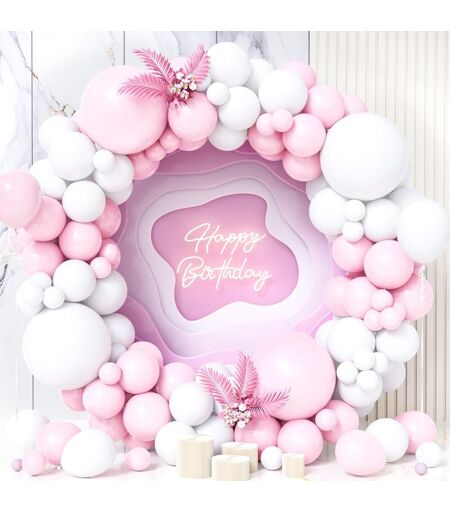What you will get You will receive a set of pink and white balloons. Package includes 4 x 18-inch balloons (pastel pink x 2, pastel white x 2), 24 x 12-inch balloons (pastel pink x 12, pastel white x 12), 70 x 10-inch balloons (pastel pink x 35, pastel white x 35), 18 x 5-inch balloons (pastel pink x 9, pastel white x 9), balloon strip x 1, point of Glue x1, ribbon x1 Kick off your elaborate party with our pink white balloon arch kit Latex Party Balloons Different sizes are made of latex, to be used as balloon decorations for birthday parties. Our balloon set is about 20% thicker than normal balloons of different sizes. They can hold their shape long after being inflated, so you don't have to worry about them spoiling your perfect party. Please note our package only includes balloons, not a balloon arch Suitable for various scenes Our balloon garland kit can be used for any oc n, birthday, wedding, baby shower, bridal shower, gender reveal, bachelorette party, graduation, marriage proposal, engagement, anniversary, retirement, Halloween, engagement, engagement, baptism. New Year, Thanksgiving, Christmas, holiday celebrations, theme parties, masquerade ball and more Ideal photo accessories Our balloons support both air and helium. You can fill the helium balloons to float, or fill them with air to place them on walls, ceilings, doors and anywhere you want to decorate. The balloon color combination will not only create a warm and comfortable atmosphere for your party, but also provide great photo props for your celebrants and guests Easy to assemble Simply inflate the balloons and attach them securely to the balloon chain. It is recommended to stag balloons of different sizes into the balloon chain to make your garland look striking. You can DIY balloon arch with your relatives, children and friends. Use glue dots to place balloons of other sizes on the surface of the arch. To prevent balloon burst, inflate the balloon to 85% Warning Not suitable for children under 36 months Warning Toy inside. Adult supervision recommended ...