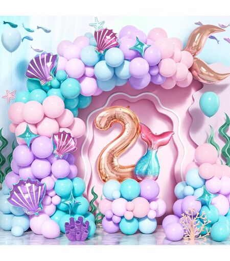 Mermaid Tail Balloon Garland Birthday 2 Years, 125 Pieces Purple Pink Teal Blue Balloons Latex Arch With Number 2 For Decorations Girls Kids Mermaid Under The Sea Theme Birthday Baby Shower
