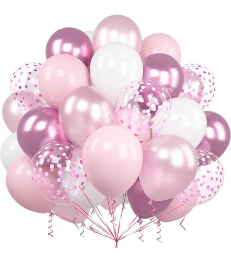 Pink White Balloons, 60 Pieces 12 Inch Pastel Pink Baby Light White Metallic Pink Confetti Latex Balloons For Girls Women Birthday Party Bridal Wedding Baby Shower Decorations