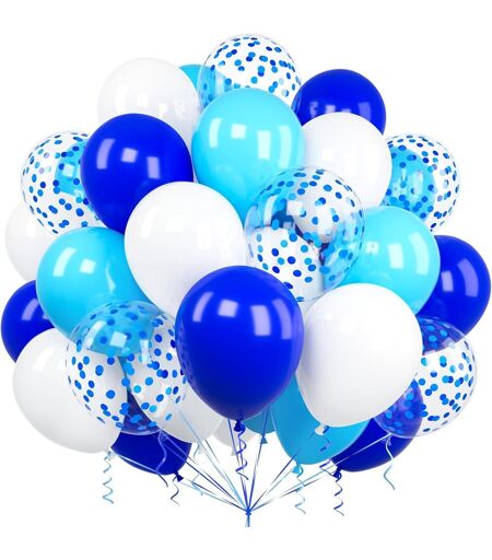 Blue And White Balloons, 60 Pieces 12 Inches Royal Light Blue Confetti Blue And White Latex Balloon For Children Girls Boys Birthday Party Baby Shower Wedding Christening Decoration