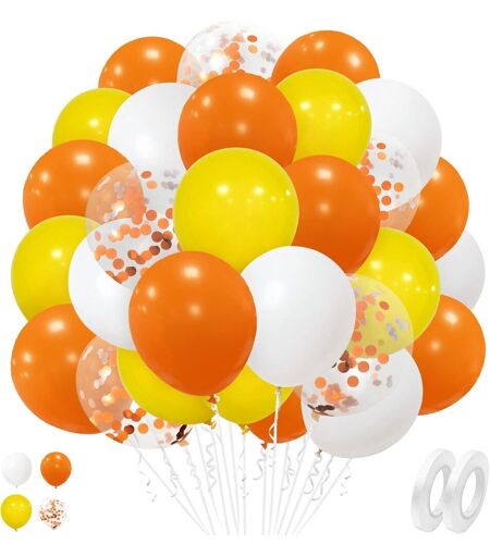 Yellow Orange Balloons, 50 Pieces 12 Inches Orange Yellow White Helium Latex Balloons With Orange Confetti Baudruche For Girls Boys Birthday Christening Party Decorations