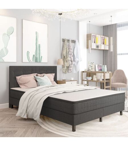 Cette tête de lit se distingue par un design sobre mais élégant, ajoutant une touche de charme élégant à la décoration de votre chambre à coucher. Fabriquée en MDF, cette tête de lit est extrêmement stable. Tapissé de tissu résistant à l'usure, le lit dégage un look accueillant et est confortable et facile à nettoyer. De plus, il convient à un cadre de lit de 140 x 200 cm. Veuillez noter qu'un cadre de lit n'est pas inclus dans la livraison. Notre tête de lit est facile à assembler. Vous pouvez consulter notre boutique pour le cadre de lit correspondant. Bon à savoir : La tête de lit est composée de deux parties. Couleur : gris foncé Matériau : tissu (100 % polyester), MDF Dimensions totales : 141 x 116 x 3,8 cm (l x H x é) Cadre de lit approprié : 140 x 200 cm (l x L) (le cadre de lit n'est pas inclus) Avec un design touffeté L'assemblage est requis ...