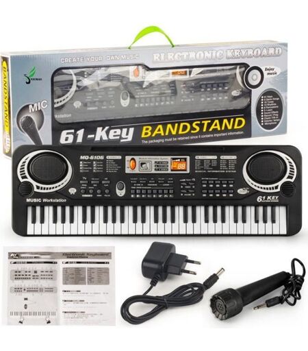 ?XICHAO vous propose 61 touches clavier électronique piano jouet musical pour enfants numéro 6106 multi-fonction professionnel de 3-6 ans conseillé. ?Colis compris: 1 x 61 touches clavier électronique piano + 1 x Microphone + 1 x adapteur Européen + ...