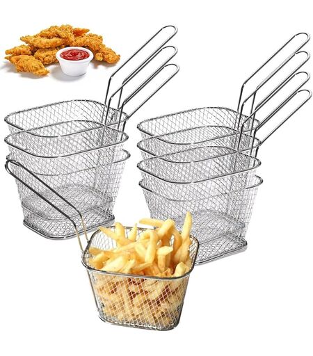 8 X Individual French Fries Basket Mini Fries Basket Stainless Steel Chip Serving Dishes For French Fries Onion Rings Chicken Wings