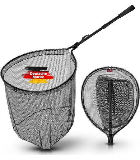 Rubber net ¿ The net net is also rubberized, so the hooks cannot get stuck in it like with fabric nets.Perfect for moving on the water - thanks to the belt clip, you can always attach the landing net to hand while remaining mobile.Extra stable ¿ thanks to the higher diameter and additional reinforced components, our fishing net will not let you down even in the event of unexpected large catches.Never again a wet, smelly landing net - Nothing is more unpleasant than having to store a wet, smelly landing net in the car or rod bag, thanks to the rubberized net, our landing net is easy to clean and dries quickly.EASY CARRYING AND HANDLING - Small folded size allows for easy transport in water and water - be mobile like never before ...