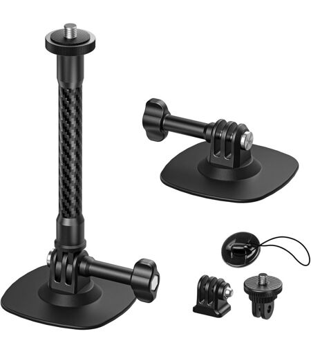 2 Flexible Adhesive Mounts: Flexible design for creative angles, can be used on flat and curved surfaces. Flexible Adhesive Base Kit Compatible for Helmet Mount for Insta360, Accessories for Insta360 X4, Helmet Mount for GoPro ¿ Unleash additional creative perspectives. A Carbon Fiber Stick: Enhance your shots with unique perspectives. 4.7 inch / 12 cm carbon fiber stick for even more possibilities. Easily fits the mount on various surfaces, even curved - gas tanks, windshields, car hoods. Designed for extreme sports, outdoor adventures or daily vlogging. UNIVERSAL MOUNTING - Comes with a 1/4"" to 2-prong adapter for use with different action camera accessories. Compatible for DJI Osmo Action 5 Pro/4/3/2/Pocket 3/2, for Insta 360 X4/X3/X2/Ace/Ace Pro/Ace Pro 2/GO 2/GO 3/GO 3S/ONE R/ONE RS/ONE X/ONE X2/, for GoPro MAX/HERO 13/12/11/10 etc. Equip your action camera safely: Safety rope to prevent loss. 3M reinforced adhesive backing designed to stay stuck even in demanding environments such as heat, humidity, wind and rain. Mounts provide secure and versatile positioning for filming your skateboarding, biking, skiing or diving experiences. Packing List: 2 x Flexible Adhesive Holder (with 3M Stickers), 1 x Carbon Fiber Stick, 1 x 1/4"" to 2 Branch Adapter, 1 x Adapter, 2 x Thumb Screws, 1 x Safety Rope, 1 x Cleaning Wipe, 1 x User Manual. Read the manual carefully before use. ...
