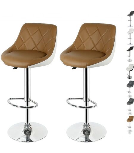 WYCTIN Hofuton Tabouret de Bar Lot de 2 avec Siège Bien Rembourré, 2 Design 2 Couleurs, Tabourets en Simili-Cuir Réglable, Marron+blanc