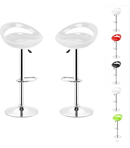 Lot de 2 tabourets de bar - Dimension : 43*43*(81-101)cm - Couleur : 5 couleurs disponibles - Matières : Structure métallique, base chromé. Tabouret de bar. Pour un style moderne et original, les tabourets de bar sont un choix idéal. Vendus en lot de 2 , ils sont parfaits pour se poser à des tables haute s, à un bar ou à un comptoir . Confortables, vous pourrez aisément vous y installer pour prendre votre petit-déjeuner ou tout autre repas, prendre un apéro, seul ou avec vos proches. Dès lors, vous pourrez les utiliser dans votre salon afin de vous créer un e espace lounge près d'un bar, contre un comptoir de cuisine ou un plan de travail lorsque vous buvez votre café, voire à une table de bar. si vous souhaitez reproduire une ambiance repas décontractée. Ils seront, à coup sûr, un merveilleux ajout à n'importe quelle habitation. Type de produits : Tabouret de bar. Matière : Structure : Cadre métallique chromé. Assise et dossier en ABS. Couleur : 5 couleurs disponibles Poids maximum ...