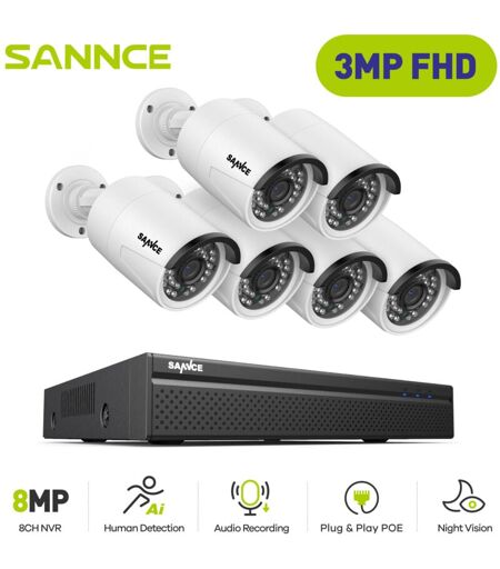 3MP kit de videosurveillance 6 × caméras smart ir vision nocturne micro intégré sécurité système - Sannce